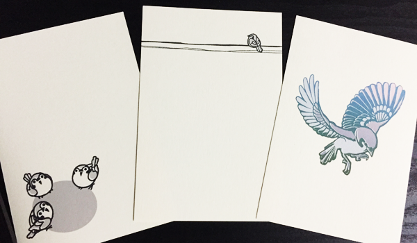 右上の2匹葉書とステッカー、下部中央のクラフト葉書が今回の新入りです。